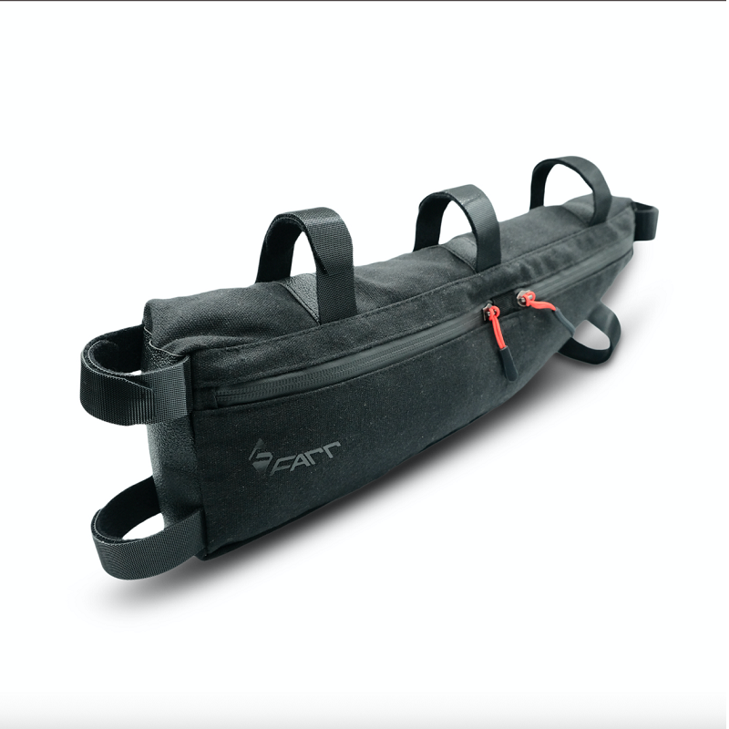 Designed as a lightweight frame bag for longer rides or flash packing.Universal fit via extra length velcro straps that allow the bag to suit a wide range of frame sizes.Dual Compartment DesignTwin Side Zipper AccessExtra Length Velcro StrapsInternal Divide for Compartments ( optional use )Ideal for Gravel / MTB / CommutingMaterial: CanvasSize : 450 ( 250 ) x 60 x 130 ( 50 ) mm