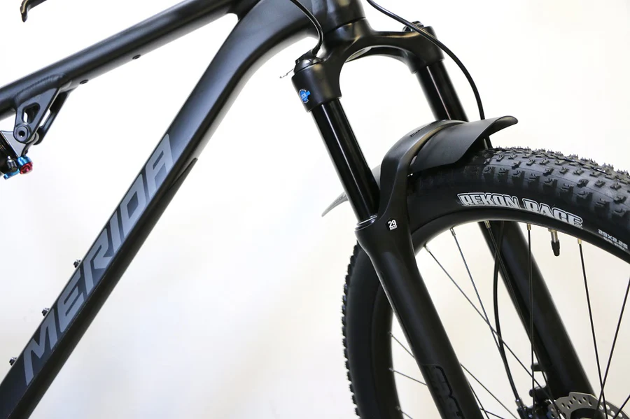 FRAMENINETY-SIX LITE VFORKSuntour Raidon34 R-2CRAir120 mm suspension travelTaperedRemote lockout46 mm fork offset29x2.4″ max. wheelsizeSHOCKSR Suntour Edge Plus 2CRBRAKESShimano MT200ROTORSShimano RT10HEADSETAcros ICR MERIDA EXTERNAL neckHANDLEBARMERIDA EXPERT CCHANDLEBAR STEMMERIDA TEAM CC IIIGRIPMERIDA COMP ECDERAILLEUR (R)Shimano Deore M6100SHIFTERSShimano SL-MT500-L / Shimano Deore M6100SEAT POSTMERIDA EXPERT TR IISEAT CLAMPMERIDA EXPERTSADDLEMERIDA COMP SLCHAINKMC X12CRANKShimano Deore MT51232 teeth170 mm XS and S, 175 mm-M upFREEWHEEL Shimano Deore M610010-51 teeth12 speedBOTTOM BRACKETShimano BB-MT-501HUBSShimano TC500-B / Shimano TC500-MS-BRIMMERIDA COMP CC II25 mm inner widthmaterial: aluminiumtubeless readyTYRE FRONTMaxxis Rekon Race29x2.25″wireTYRE REARMaxxis Rekon Race29x2.25″wireAXLESMERIDA COMP TRSPOKESBlack stainlessWEIGHT15.02 kgMAX. WEIGHT135 kg