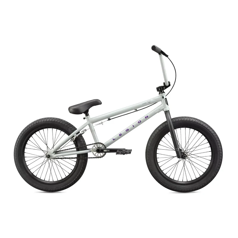 Mongoose full 4130 Chromoly frame, tapered headtube, removable brake mounts, and mid BB shell.175mm 2-piece tubular chromoly hollow spindle cranks with a 25T alloy chainring and mid sealed bearing bottom bracket.20” x 2.4” tires mounted on wide aluminum double wall 36H rims with 3/8” female axle front hub and 9T cog sealed bearing cassette rear hub.4130 chromoly handlebar and fork, 50mm stem, threadless sealed integrated headset, and Alloy U-brake.21-inch top tube length. Suggested rider height is 5’8″ and up.With the Legion Series, Mongoose offers a full line of freestyle BMX bikes for riders of all ages and ability levels. The Legion L100 was designed to be a fully park, street and dirt worthy BMX bike that offers everything a rider could need from beginner level curb jumps all the way up to advanced aerial tricks on a quarterpipe!SPECIFICATIONSFRAME4130 chromoly, BMX freestyle geometry, removable brake mounts, integrated headset, mid BB shellFORK4130 chromolyCRANK2-piece, tubular chromoly hollow spindle, 25T aluminum chainringCHAINKMC S1BOTTOM BRACKETMid sealed bearing, 8-spline spindleREAR COGSingle-speed, 9T cassette driverRIMSXposure Infinity-XD, aluminum double wall, 30 mm ID, 36HFRONT HUBAluminum, ball bearing, 3/8 in axle, 36HREAR HUBAluminum, sealed-bearing cassette, 14 mm axle, 36HSPOKES14G, steel, blackTIRES20 in x 2.4 in, wire beadPEDALSMongoose, nylonBRAKESU-brake, aluminumHANDLEBARMongoose, 4130 chromoly, 29 in width, 8.75 in riseSTEMMongoose, threadless top load, 50 mmHEADSETThreadless, integrated 1-1/8”, cartridge bearingSEAT POSTPivotal, steel, 250 mm, 25.4 mmSADDLEMongoose PivotalGRIPSMongoose MushXL, 160 mmSIZESOne sizeOne size