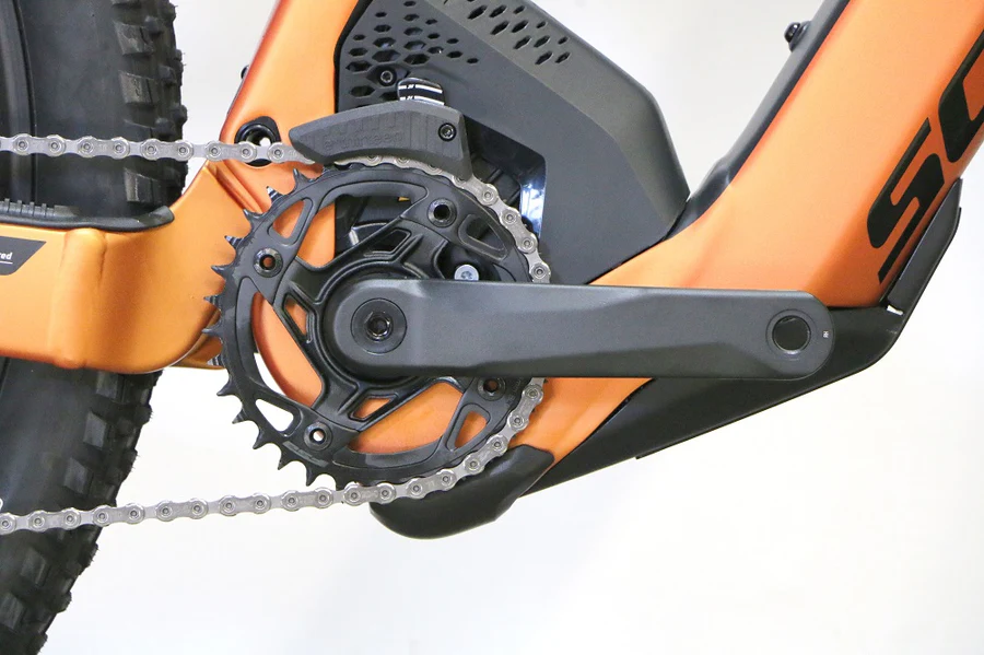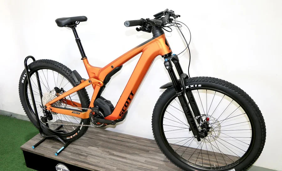 Based on the Patron eRIDE platform, the Strike eRIDE 910 EVO offers SCOTT’s latest technologies together with the newest Bosch motor. Versatile, reliable, and accessible, the Strike puts the accent on the comfort with 150mm of travel, slicker tires, thicker grips and saddle to give you a solid choice for any outing.FRAME: Alloy Frame & LinkVirtual 4 link kinematic VLK29x2.6 / Boost 148x12mm UDH150mm travel / Bosch Gen4 / Integr. removable Battery1.8″ Headtube, Central Kickstand MountIntegr. CableTRAVEL: Front & Rear: 150mmFORK: FOX 36 Rhythm AirGrip 3 / 3-Modes / 15x110mm QR axletapered steerer / Reb. Adj. / Lockout / 150mm travelREAR SHOCK: FOX Float EVOL eRIDE Trunnion3 modes / Lockout-Trail-DescendDPS / Reb. Adj.Travel 150mm / 205x55mmREMOTE SYSTEM: SCOTT TwinLoc 2 TechnologySuspension & Dropper Remote3 modesDRIVE UNIT: Bosch Performance CX32kmhBATTERY: PowerTube 750WhDISPLAY: Bosch LED Remote & Kiox 300CHARGER: 4A ChargerREAR DERAILLEUR: Shimano XT / 12 SpeedSHIFTERS: Shimano SL-M6100CRANKSET: FSA CK-745 / 165mm / 34TCHAINRING: FSA W0138+WB499 / 34T / SteelCHAIN: Shimano CN-M6100CASSETTE: Shimano CS-M6100 / 10-51 TBRAKES: SRAM DB8 4 Piston DiscROTOR: Centerline CL Rotors 200mm F&RHANDLEBAR: Syncros Hixon 2.0 Rise / Alloy 6061D.B.20mm rise / 8° / 760mmSyncros Comfort lock-on gripsH’STEM: Syncros AM2.0 / 6061 Alloy31.8mm / 4° / 1 1/8″SEATPOST: Syncros Duncan Dropper Post 2.531.6mm / S size 125mm / M size 150mm / L size 170mm / XL size 200mmSEAT: Syncros CapilanoHEADSET: Acros / 1.8″ZS66 OD74 / 12mm Adapter / integr. CableHUB (FRONT): Shimano HB-MT410-B CL / 15x110mmHUB (REAR): Shimano FH-MT410-B CL / Boost 12x148mmSPOKES: Stainless BlackRIMS: Syncros MD30 / 32H / 30mm / Pin JointTubeless readyFRONT TIRE: Maxxis Rekon / 29×2.6″ / 120TPI Foldable BeadEXO+ / TR Tubeless ready3C Maxx TerraREAR TIRE: Maxxis Rekon / 29×2.6″ / 120TPI Foldable BeadEXO+ / TR Tubeless ready3C Maxx TerraLIGHTS: Syncros integrated rear fender lightFront Light Cable pre-installedEXTRAS: Syncros Trail FenderAPPROX WEIGHTS IN KG: 26.2 (with tubes)APPROX WEIGHTS IN LBS: 57.76 (with tubes)MAX. SYSTEM WEIGHT: 128kgThe overall weight includes the bike, the rider, the equipment, and possible additional luggage.